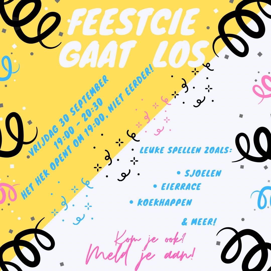 Aankomende vrijdag, 30 september, trappen we af met het feest: De feestcie gaat los! van 19:00 tot 20:30.