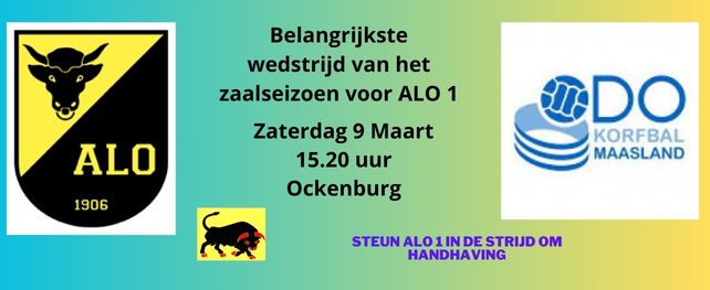 De klinkende overwinning van ALO 1 afgelopen weekend en de aansluitende andere resultaten in de poule resulteren in een super spannende apotheose van de zaalcompetitie voor ALO 1. Er zijn allerlei scenario’s maar bij winst aanstaande zaterdag tegen ODO en als dan tegelijk Refleks kampioen wordt tegen Fiducia dan handhaaft ALO 1 zich!!